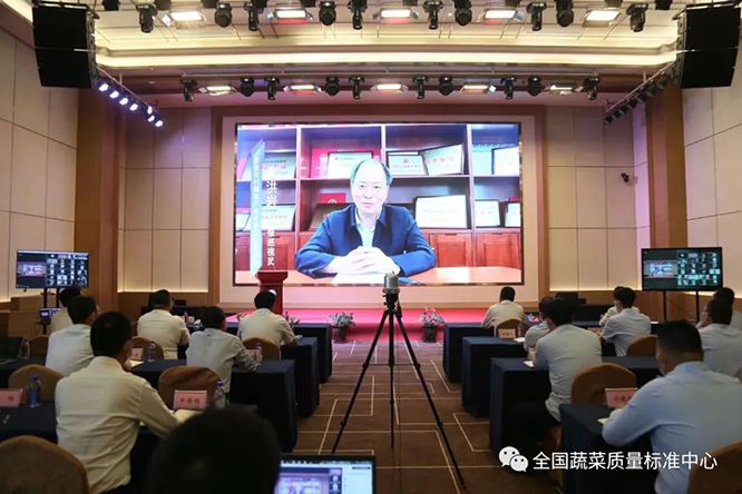 全国50家试验示范基地的主要负责人、采购负责人以及7家优质蔬菜采购企业在分会场参加了视频会议。会上,农业农村部农产品质量安全监管司二级巡视员董洪岩、山东省农业农村厅农产品质量安全监管处处长张刚视频讲话,全国蔬菜质量标准中心党组书记、主任付乐启致辞,会议由全国蔬菜质量标准中心副主任李美芹主持。