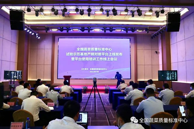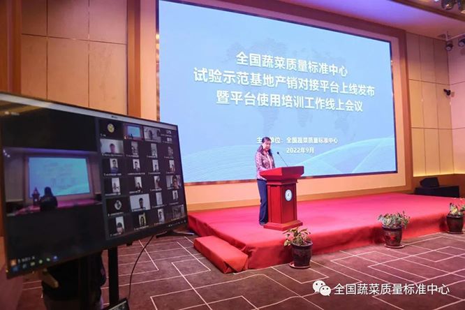 2022年9月26日,全国蔬菜质量标准中心试验示范基地产销对接平台(https://zxscg.com)上线发布暨平台使用培训工作会议在寿光举行。