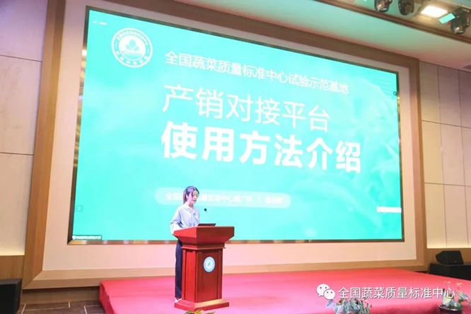 会上,全国蔬菜质量标准中心推广科科长李兰娟介绍了产销对接平台相关事项,全国蔬菜质量标准中心试验示范基地代表烟台旭耕有机农场介绍了基地标准化管理工作主要做法,采购方代表正大卜蜂国际供应链—上海景瑞农业科技有限公司对产品质量标准需求方面进行发言。最后,由全国蔬菜质量标准中心推广科农艺师高旭辉进行了平台使用业务培训。