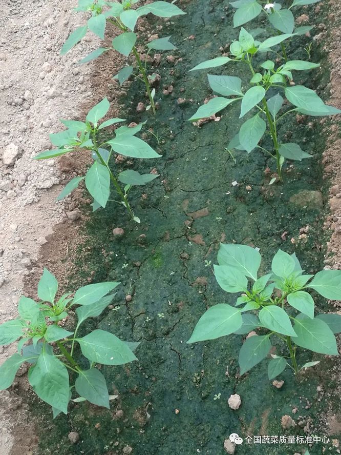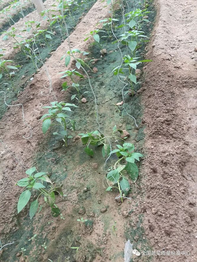 辣椒属于浅根系蔬菜,且根系的再生能力不强,若定植过深,会导致辣椒根系生长慢,延长缓苗时间。定植时带坨移栽,覆土,苗坨上表面与垄(畦)面平齐即可。
