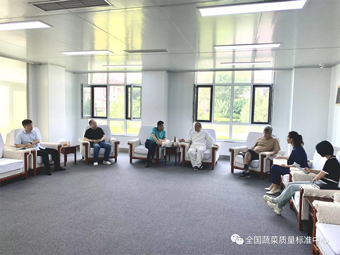6月13日,深圳百果园实业(集团)股份有限公司董事长、中国果品流通协会副会长、中国优质农产品开发服务协会副会长、优质果品产业联合会发起人余惠勇到全国蔬菜质量标准中心考察、参观,并对接优选品种、标准制定、园区合作等相关工作。余惠勇一行现场了解了全国蔬菜质量标准中心在标准研制、示范推广等方面的工作情况,并进行了座谈交流,双方共同探讨了在高品质蔬菜生态种植标准、园区培育、品质评价等方面的合作与交流方向。