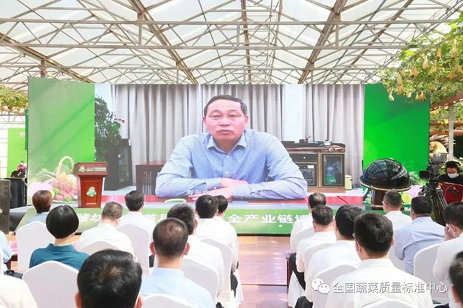 中国农业科学院农业质量标准与检测技术研究所所长、农业农村部农产品质量标准研究中心主任、全国蔬菜质量标准中心顾问钱永忠通过视频致《“寿光蔬菜”区域公用品牌管理规范》《寿光蔬菜全程品质管控通用技术要求》团体标准发布辞。