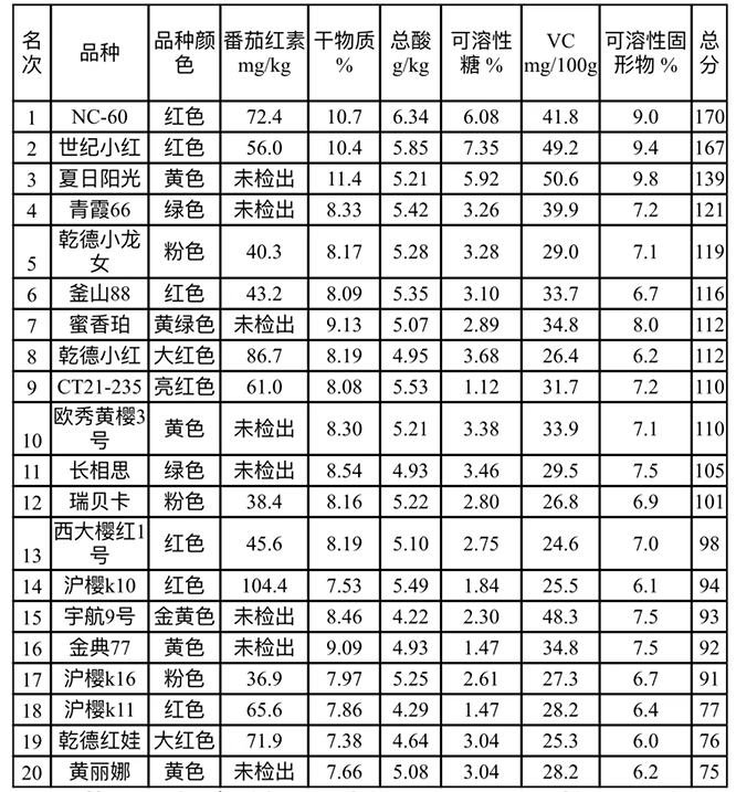 前期,“2022年最受消费者喜爱的樱桃番茄”评选活动通过两轮初赛评选出前30名进入复赛,所有进入复赛的品种已全部完成番茄红素、VC、可溶性糖等营养指标的测定,根据复赛评分办法,总评分前20名进入决赛,现将进入决赛的樱桃番茄品种名单公布如下: