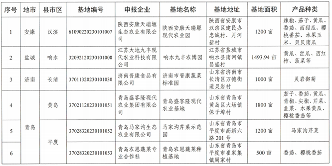 2022年度全国蔬菜质量标准中心试验示范基地新认定名单(12家)