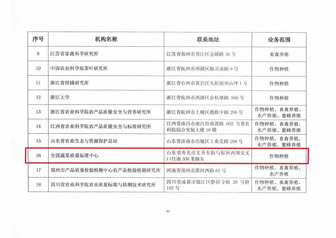 近日,农业农村部农产品质量安全中心公布第二批农产品质量安全全程控制规范技术机构名单,全国蔬菜质量标准中心经省级推荐、部级综合审查成功入选。