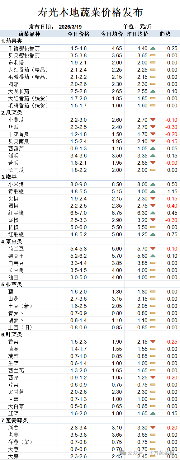 今日菜价走势